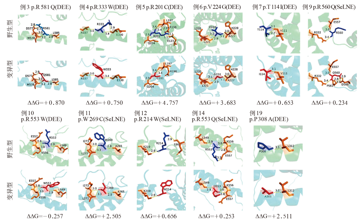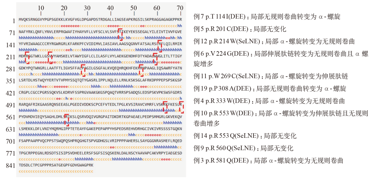 目的 分析新生儿遗传性癫痫的临床与基因变异特征,探究基因变异特点与临床表现的相关性。方法 回顾性收集2019年1月至2024年12月河北省儿童医院收治的新生儿遗传性癫痫病例,根据基因测序结果分为KCNQ2组和非KCNQ2组,比较两组临床特征,并分析KCNQ2基因型-表型相关性。结果 共纳入新生儿遗传性癫痫43例,男26例、女17例,中位胎龄39.4(38.1~40.3)周,出生体重3 400(3 000~3 400)g,KCNQ2组24例、非KCNQ2组19例。癫痫起病时间为生后3.0(2.0~7.0)d,与非KCNQ2组相比,KCNQ2组癫痫起病时间更早,差异有统计学意义(P<0.05)。发作形式以阵挛(62.8%)、强直(53.5%)发作为主,头颅磁共振成像以脑实质信号异常(72.1%)为主,视频脑电图以多灶性放电(34.9%)多见,KCNQ2组和非KCNQ2组之间差异均无统计学意义(P>0.05)。KCNQ2组自限性新生儿癫痫(SeLNE)13例、发育性癫痫性脑病(DEE)11例,其中23例成功随访,19例发作控制、8例发育迟缓、2例死亡;非KCNQ2组SeLNE 1例、DEE10例、其他8例,其中13例随访成功,7例发作控制、7例发育迟缓、4例死亡。KCNQ2组SeLNE比例高于非KCNQ2组(54.2%对5.3%,P<0.01),死亡和发育迟缓比例低于非KCNQ2组(43.5%对84.6%,P=0.033)。KCNQ2核苷酸序列变异共19例,其中10例SeLNE,5例遗传性变异,4例错义变异,7例氨基酸改变位于C末端。9例DEE均为新发变异,其中7例错义变异,5例氨基酸改变位于S4、S6及邻近区域、B螺旋区。预测11例错义变异蛋白结构变化:4例SeLNE中2例蛋白二级结构改变,3例氢键改变,4例蛋白稳定性下降;7例DEE中6例蛋白二级结构改变,4例氢键改变,6例蛋白稳定性下降。结论 新生儿遗传性癫痫中KCNQ2基因变异最多见。与其他基因变异相比,KCNQ2变异所致新生儿癫痫起病时间更早,不良预后比例较低,其中新发、错义和重要结构域的变异可能与DEE表型相关。